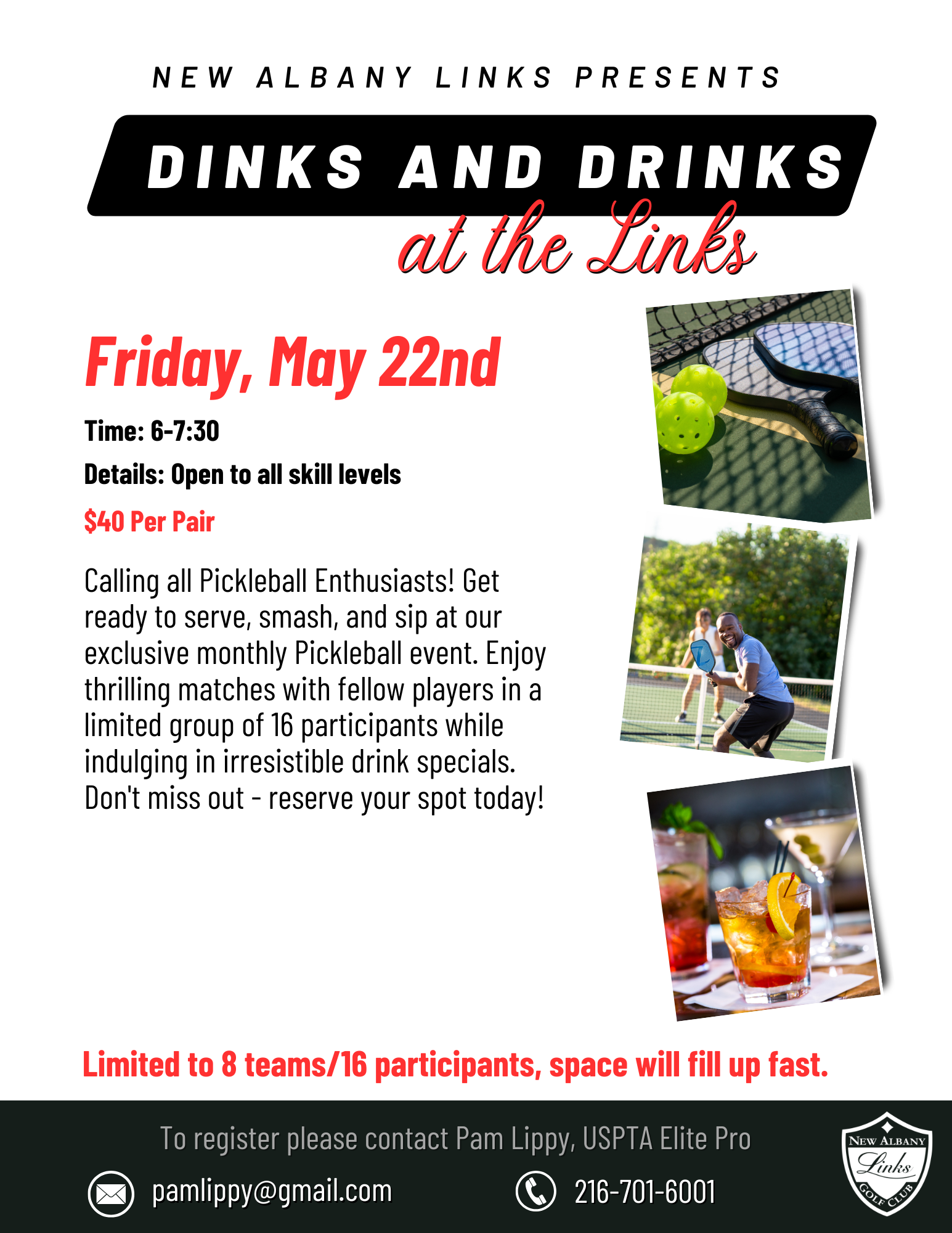 Dinks & Drinks at the Links Date: Friday, May 22nd, 2026 Time: 6:00 pm-7:30 pm Location: New Albany Links Courts Cost: $40 Per Pair | Open to All Skill Levels Details: Calling all Pickleball […]